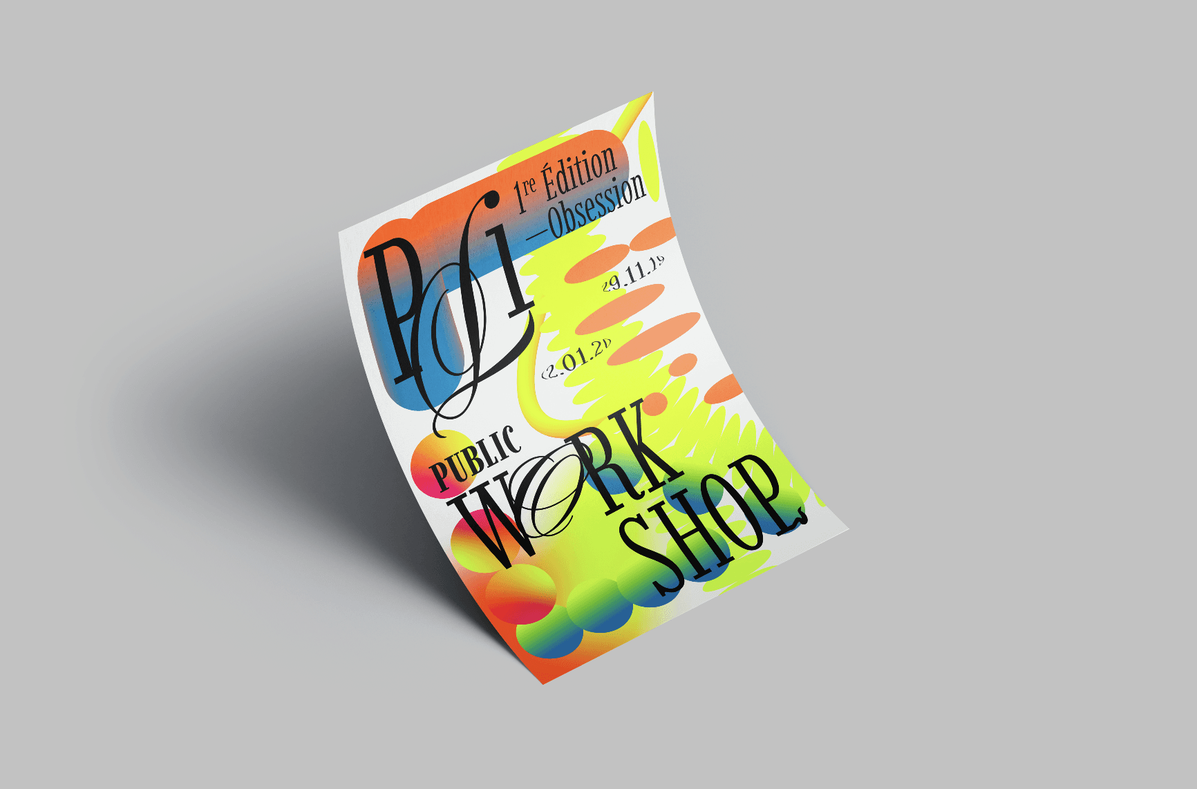 Le Pli Public Workshop est un programme d’aide à la création. Les projets explorent et remettent en question les modes de création et de représentation traditionnels. L’affiche que j’ai conçue en découle, expérimentant avec la tendance de l’uglydesign.